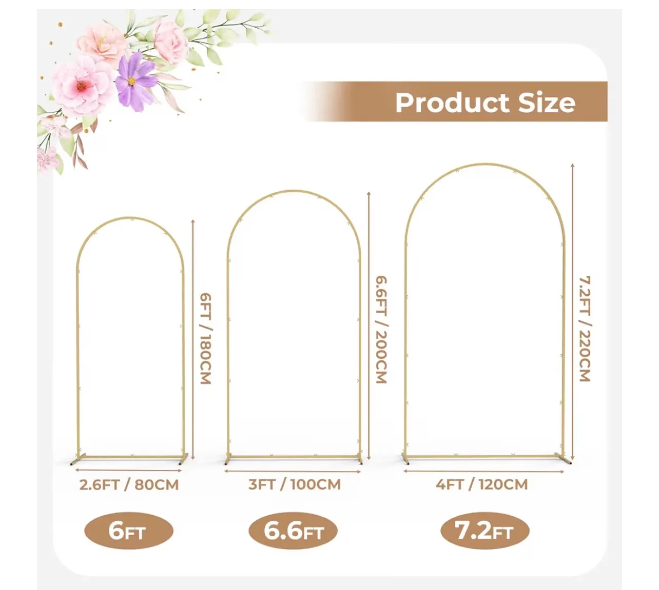 Medium arch: 6.6 ft tall x 3 ft wide
